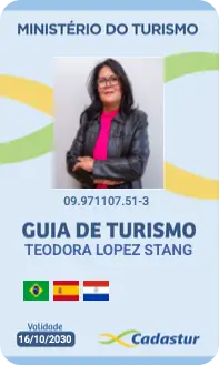 Sou Teodora, paraguaia, casada e mãe de três filhos. Cheguei ao Brasil há 28 anos para trabalhar e acabei ficando. Um convite inesperado me levou ao turismo, e hoje, com mais de 16 anos de experiência, sou guia credenciada no Parque Nacional das Emas, oferecendo passeios e vivências únicas na natureza.